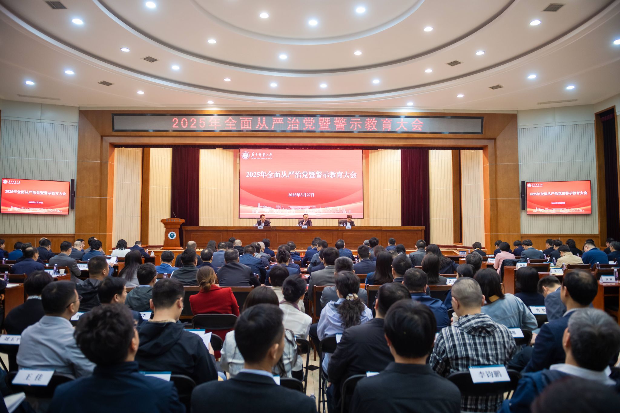 (通讯员 涂敏)3月27日,学校召开2025年全面从严治党暨警示教育大会,总结学校2024年全面从严治党工作,分析研判形势任务,部署安排2025年重点工作,深入开展警示教育。校党委书记夏立新出席会议并讲话,校长、党委副书记彭双阶主持会议,校党委副书记、纪委书记刘继文总结并部署学校纪检巡察工作。
