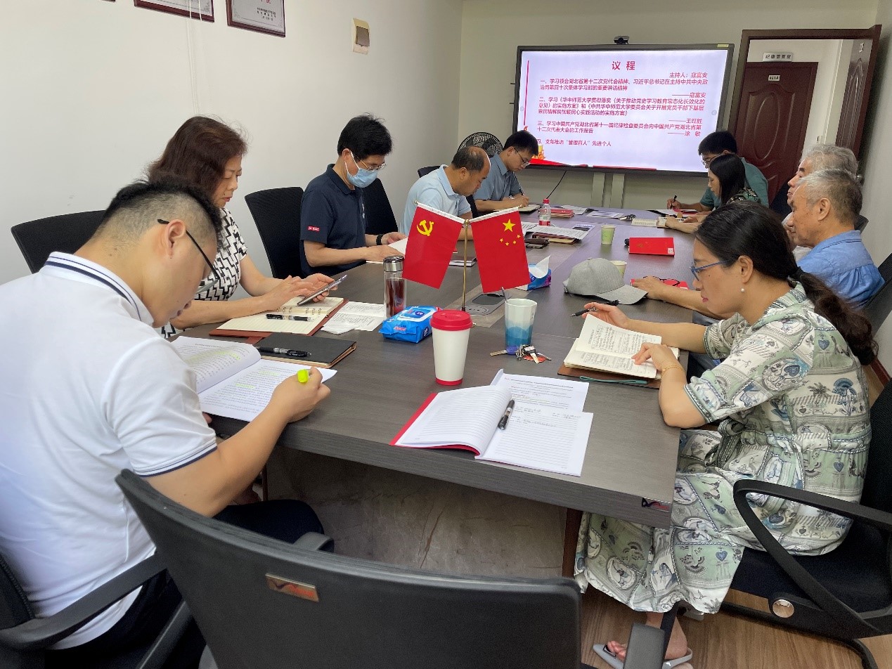 支部党员在集体重温入党誓词,学习党章后,按照学校党委组织部6月份支部主题党日活动安排,重温了习近平总书记在庆祝中国共产党成立100周年大会上的讲话,学习了《华中师范大学贯彻落实〈关于推动党史学习教育常态化长效化的意见〉的实施方案》和《中共华中师范大学委员会关于开展党员干部下基层察民情解民忧暖民心实践活动的实施方案》。
