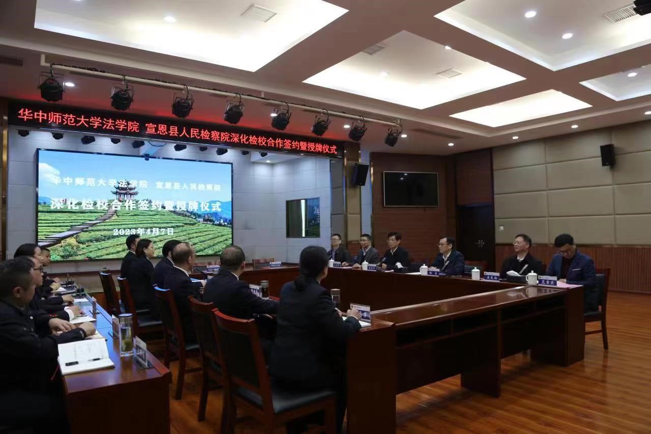 在恩施市,恩施市委常委、纪委书记、监委主任向旭东介绍了恩施市纪委监委监督执纪问责开展情况,并就建立常态化协作交流机制、培训纪检监察干部队伍等提出了深化地校合作交流的建议。陈厚丰介绍了我校纪检监察体制改革情况和重点工作,对优化校地纪检工作协作交流机制、搭建交流合作平台、推动监察理论实务创新提出了指导性意见,同时慰问了正在挂职的我校法学院教师朱良博士。会后,我校法学院与恩施市纪委监委签署了相关合作协议,陈厚丰、向旭东共同为“华中师范大学法学院法学实践基地”揭牌。
