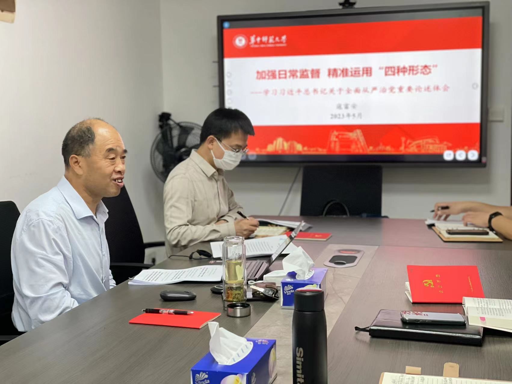 5月26日上午,纪委办巡察办党支部在行政楼401C室召开了支部书记讲专题党课暨2023年5月份主题党日活动,活动由党支部书记寇富安同志主持。