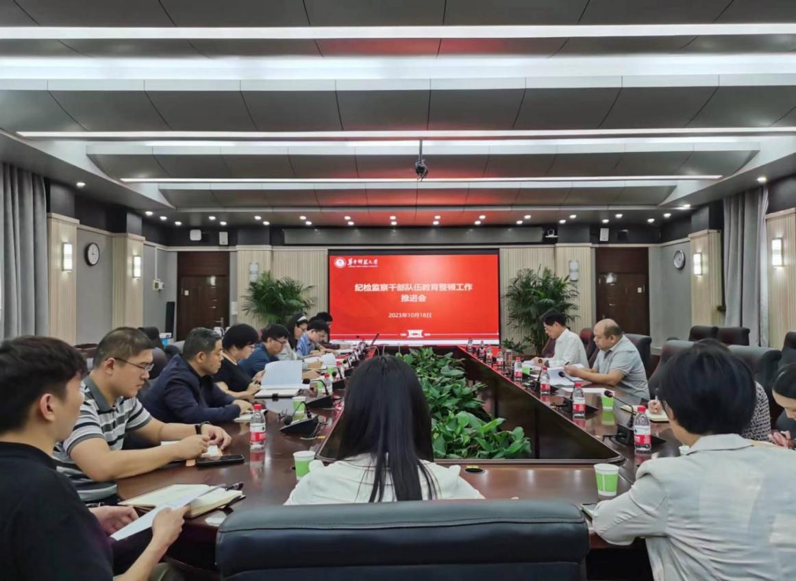 (通讯员赵娜)10月18日下午,学校纪委在行政楼一楼会议室组织召开了2023年纪检监察干部队伍教育整顿工作推进会,全体专兼职纪检监察干部参会,校党委副书记、纪委书记陈厚丰主持会议。
