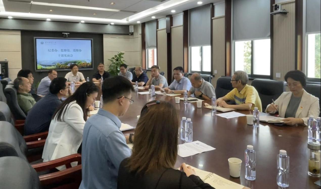 7月12日上午,学校党委宣布有关干部任免决定,杨青松同志任纪委副书记兼纪委办公室主任、监察处处长,寇富安同志、高卓献同志任巡察组组长。校党委书记夏立新出席纪委办、监察处、巡察办干部任免决定宣布会议并讲话。当天上午,校党委副书记、纪委书记刘继文主持召开了纪委办、监察处、巡察办新任干部见面会,并对新任干部开展集体廉政谈话。纪委办、监察处、巡察办全体干部及巡察组组长参会。