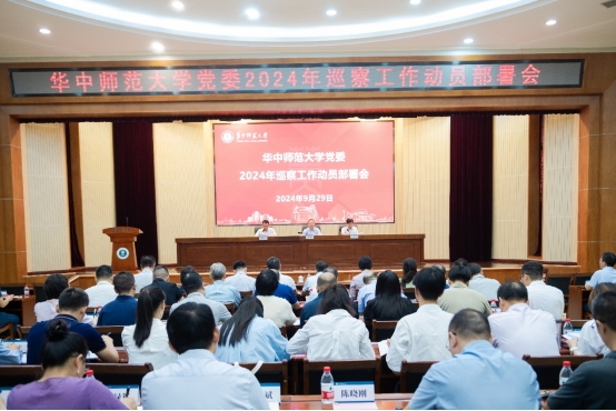 【通讯员:王涛、黄晨曦】9月29日,校党委2024年巡察工作动员部署会在科学会堂一楼报告厅召开。校党委书记、校党委巡察工作领导小组组长夏立新,校长、校党委巡察工作领导小组组长彭双阶,校党委副书记、纪委书记、校党委巡察工作领导小组副组长刘继文出席会议。学校巡察工作领导小组成员单位主要负责人,2024年巡察组全体成员,本轮接受巡察的10个二级单位党政主要负责人、联络员,党委巡察办工作人员参加会议。刘继文主持会议。