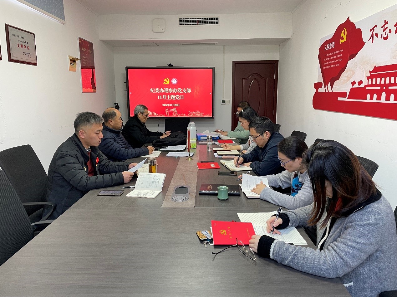 11月28日下午,纪委办、巡察办党支部开展2024年11月份主题党日活动,全体在校党员参加会议,党支部书记寇富安同志主持会议。