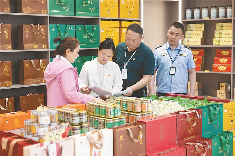 湖南省沅江市纪委监委严查“四风”隐形变异问题,加强与市场监管等职能部门协作,深入酒店、商超、烟酒店等场所,排查公款吃喝、公款购买购物卡和礼品等问题线索,不断健全风腐同查同治工作机制。图为该市纪检监察干部与职能部门工作人员在商店查看相关记录。盛拥军 摄